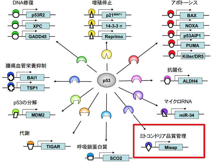 図1.がん抑制遺伝子p53の標的遺伝子としてMieapを発見した